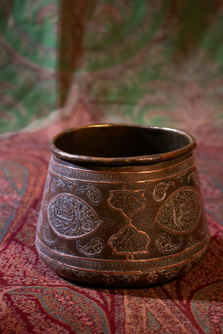 Mamluk Style Copper, Brass, Silver Engraved Bowl