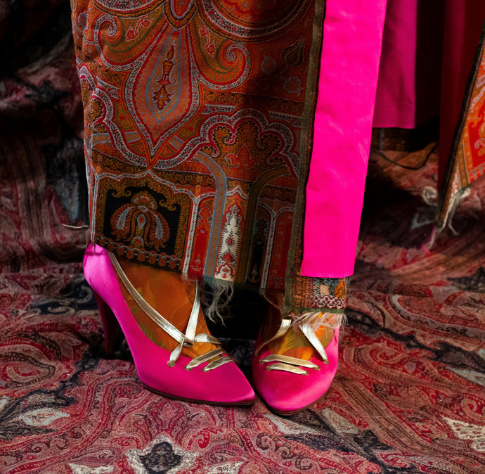 Manolo Blahnik Pink Silk and Lamé Lace-up Heels
