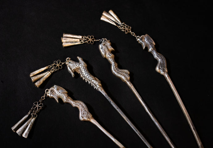 Hair Sticks Set in Antique Silver - Miao Tribes, China