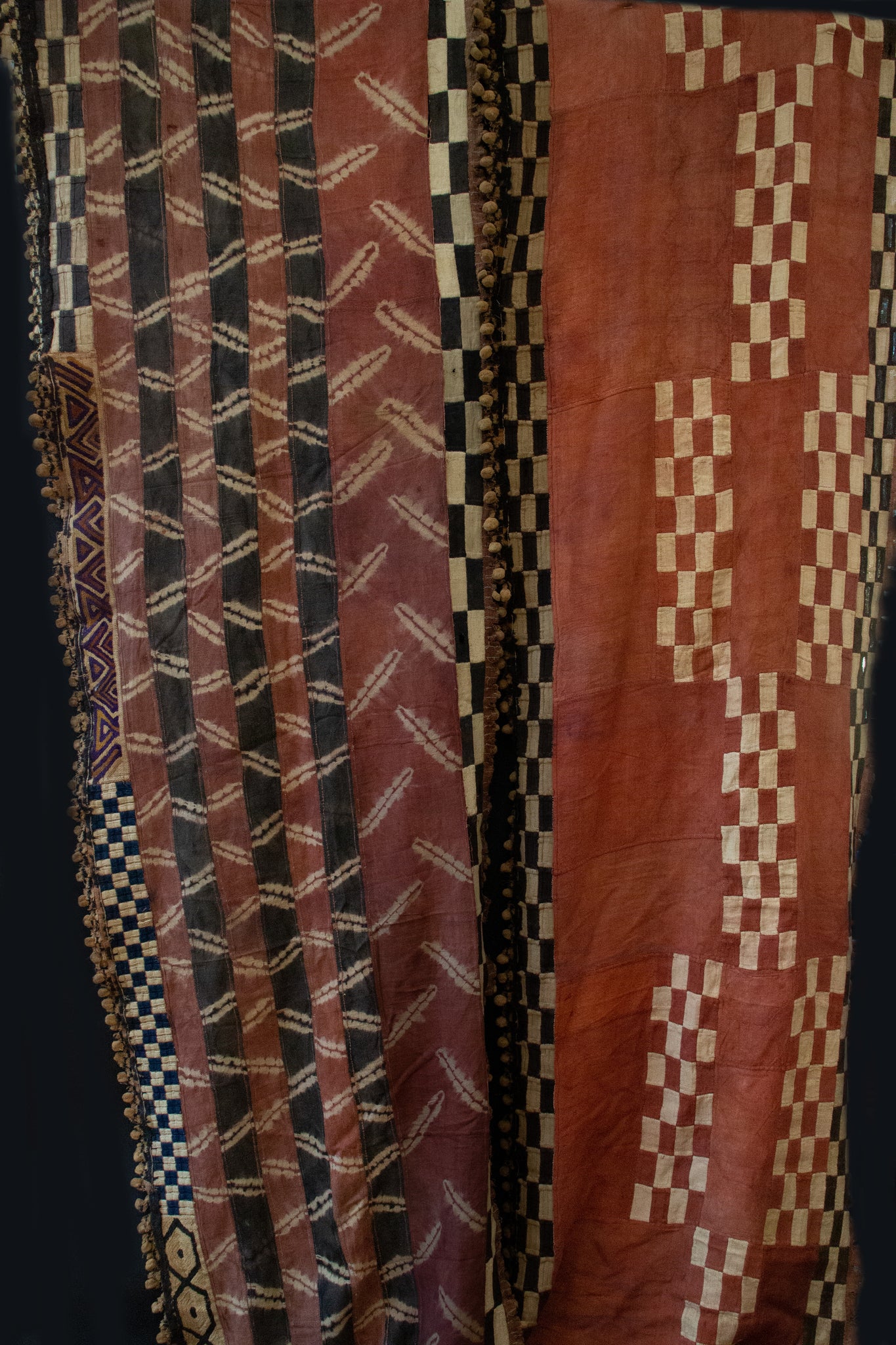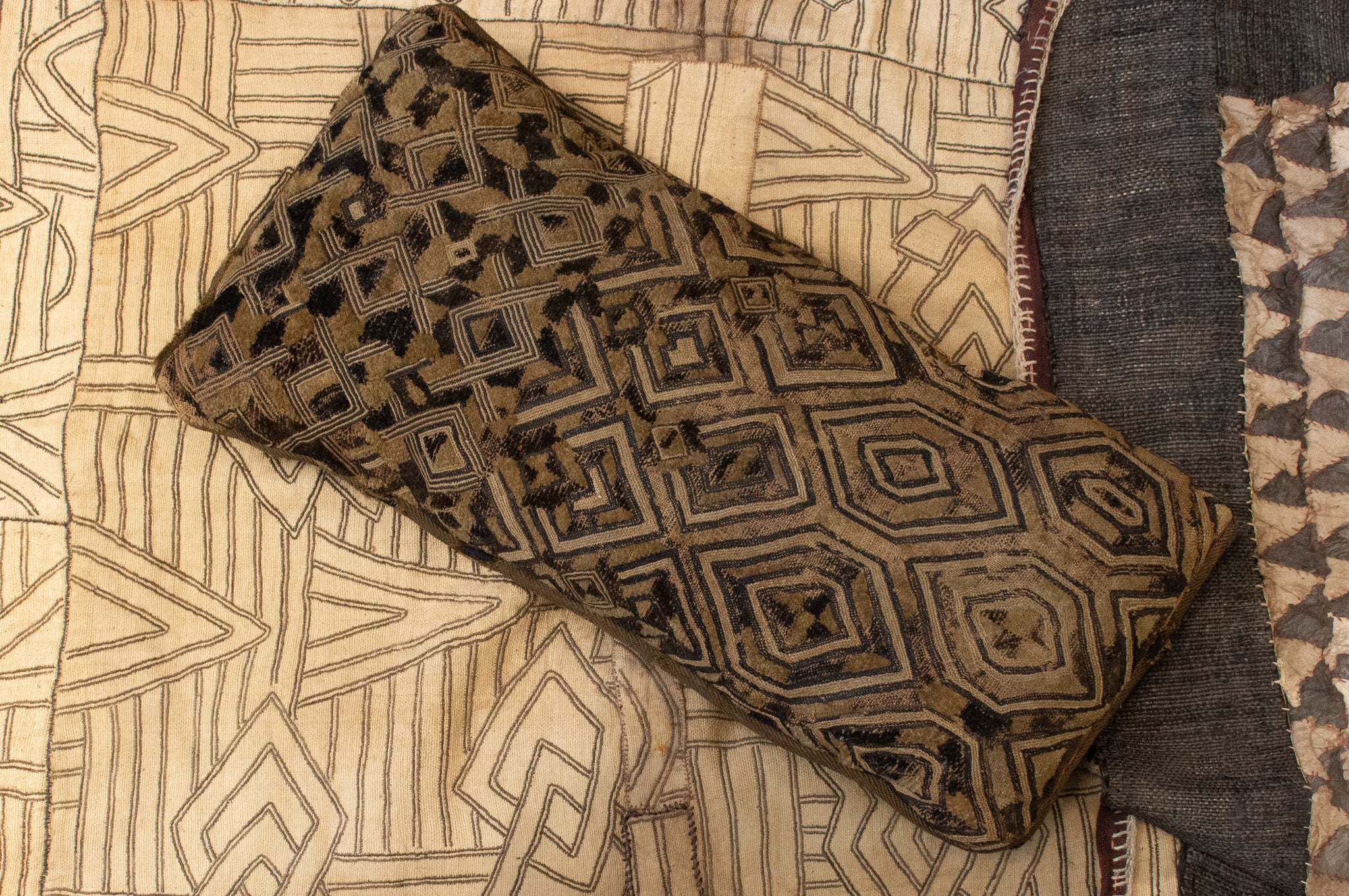 Vintage Kuba Cloth Skirts , can be used for upholstery , wall coverings , pillows and collected as works of art. Kuba people used these long lengths and wrapped themselves with many meters of handwoven and embroidered raffia fiber skirts. Patchwork and amazing patterns of knot designs are some of the traditional designs found as well as sheared shag surfaces. In some cases I have left these as found and others have been up cycled as pillows.