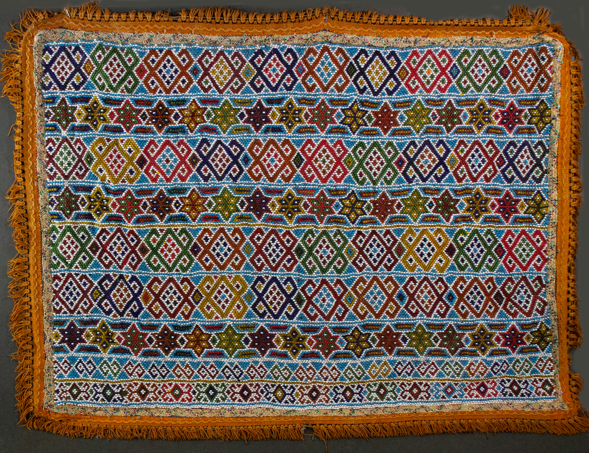 A rare unusually large beaded panel with complex geometric design from the Pashtune people , Afghanistan . Condition excellent