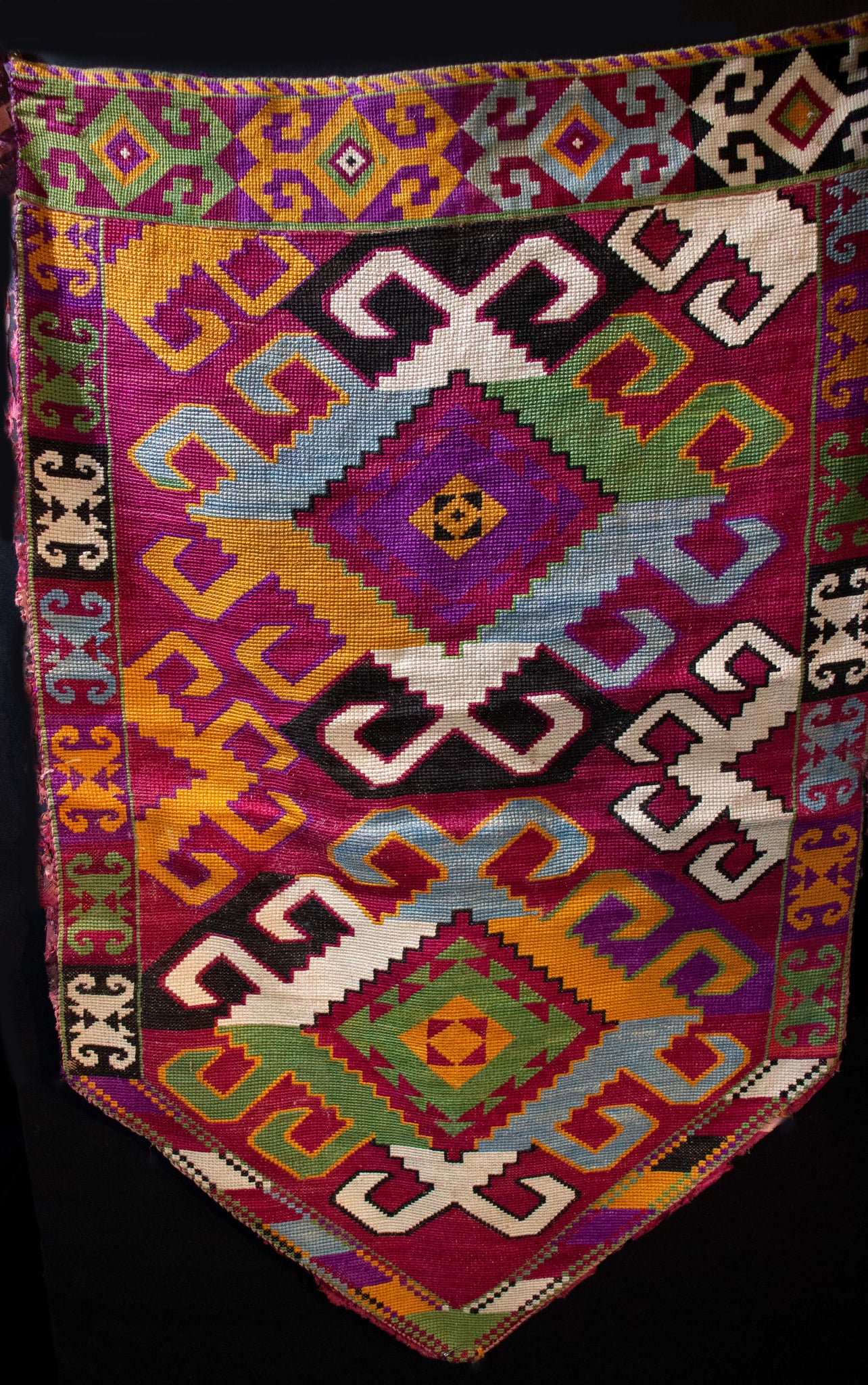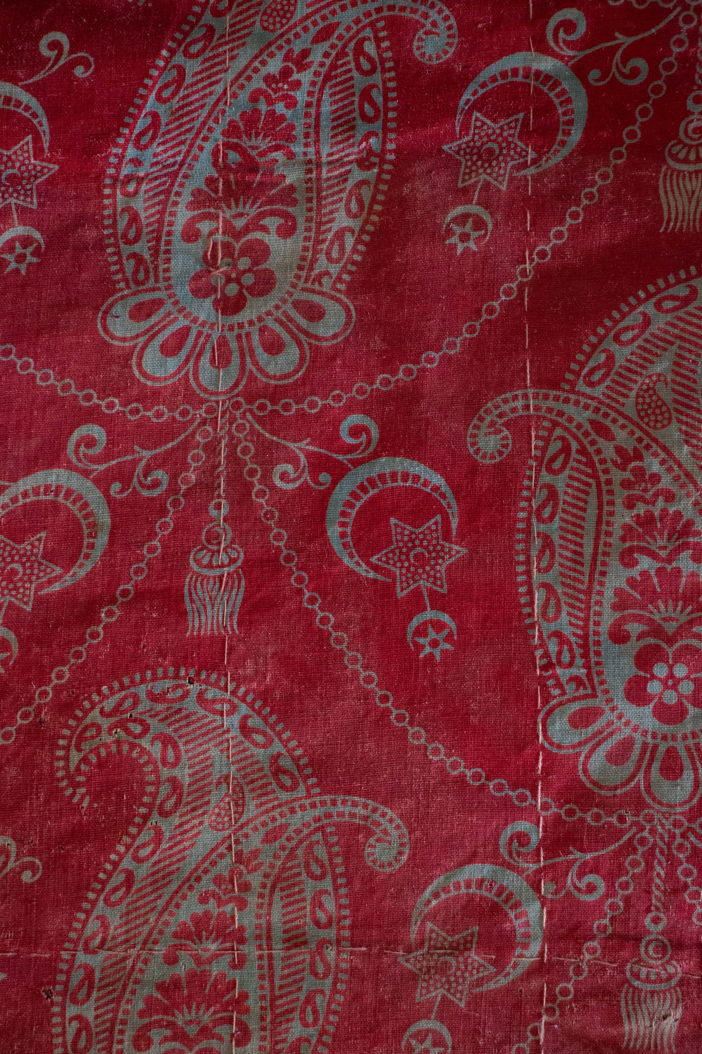 A nice pair of late 19th century Uzbekistan Lakia pendants with Russian roller printed paisley lining fabric on both. From an old collection that has been put away for many years. 22" H x 13.5" W